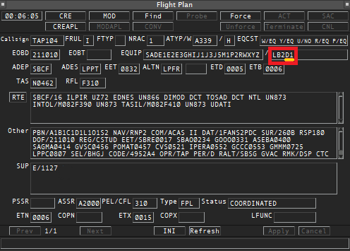 Confira no plano de voo da aeronave, especialmente no item 10b, a existência do grupo D1.