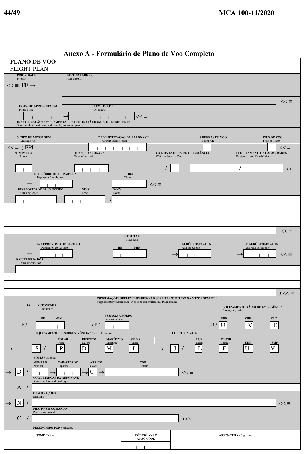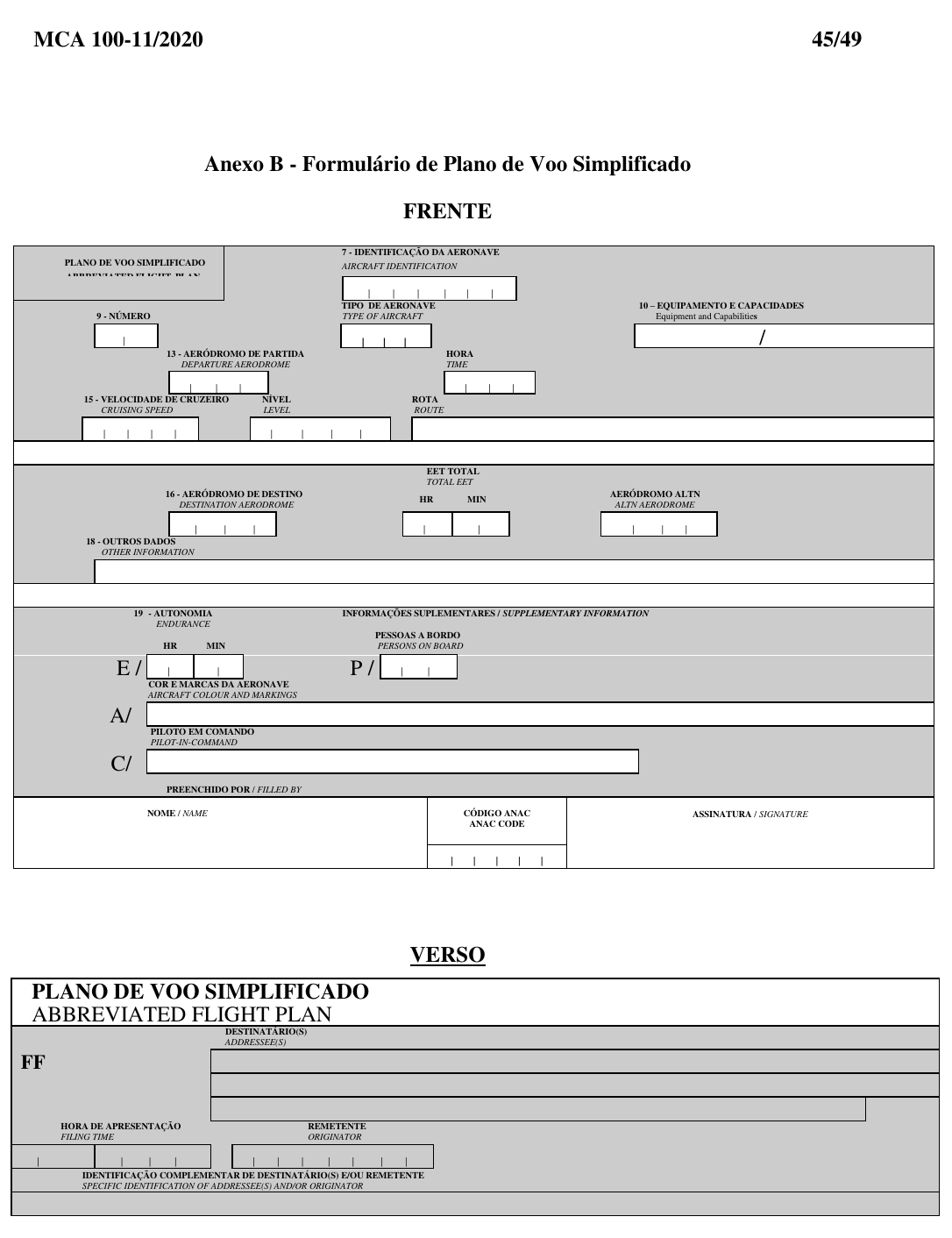 - Os campos sombreados/verso costumam ser destinados a uso AIS/ATS.