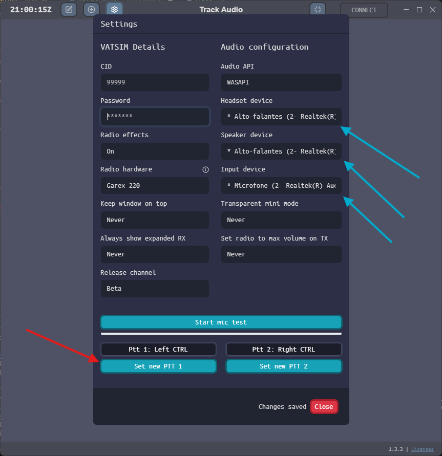 - Configure inserindo sua CID e senha da Vatsim, configurando com atenção os seguintes pontos: